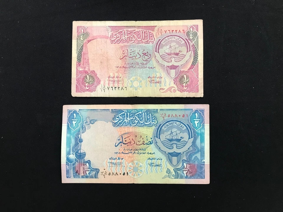 Kuwait 1/4, 1/2, 1, 5 Dinars Banknotes 1992 Old Very Rare old Bank Bills 4pcs / Lot