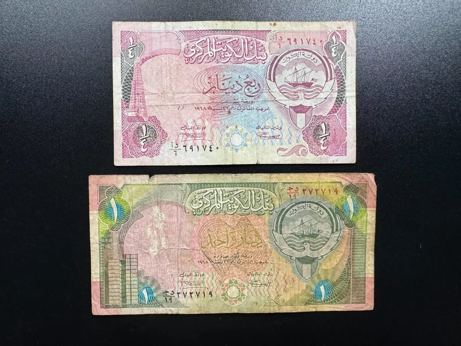 Kuwait 1/4, 1 Dinar Banknotes 1992 Old Circulated Rare Paper Bank Bills 2pcs/Lot