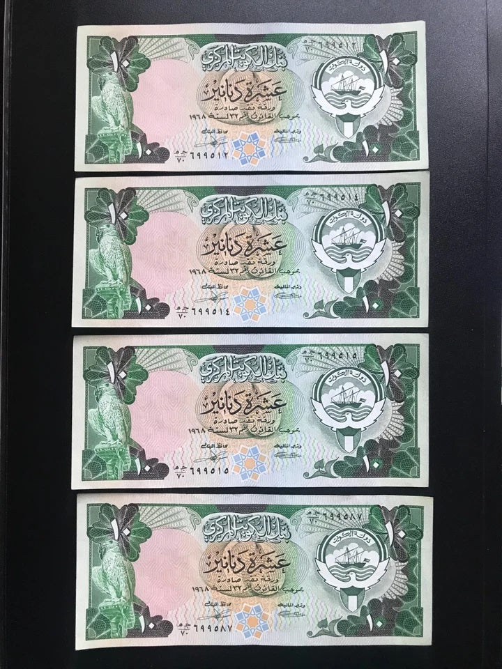 Kuwait 10 Dinar Banknotes 10Pcs/Lot 1980ND Old XF Paper Money Bank Bills P-15