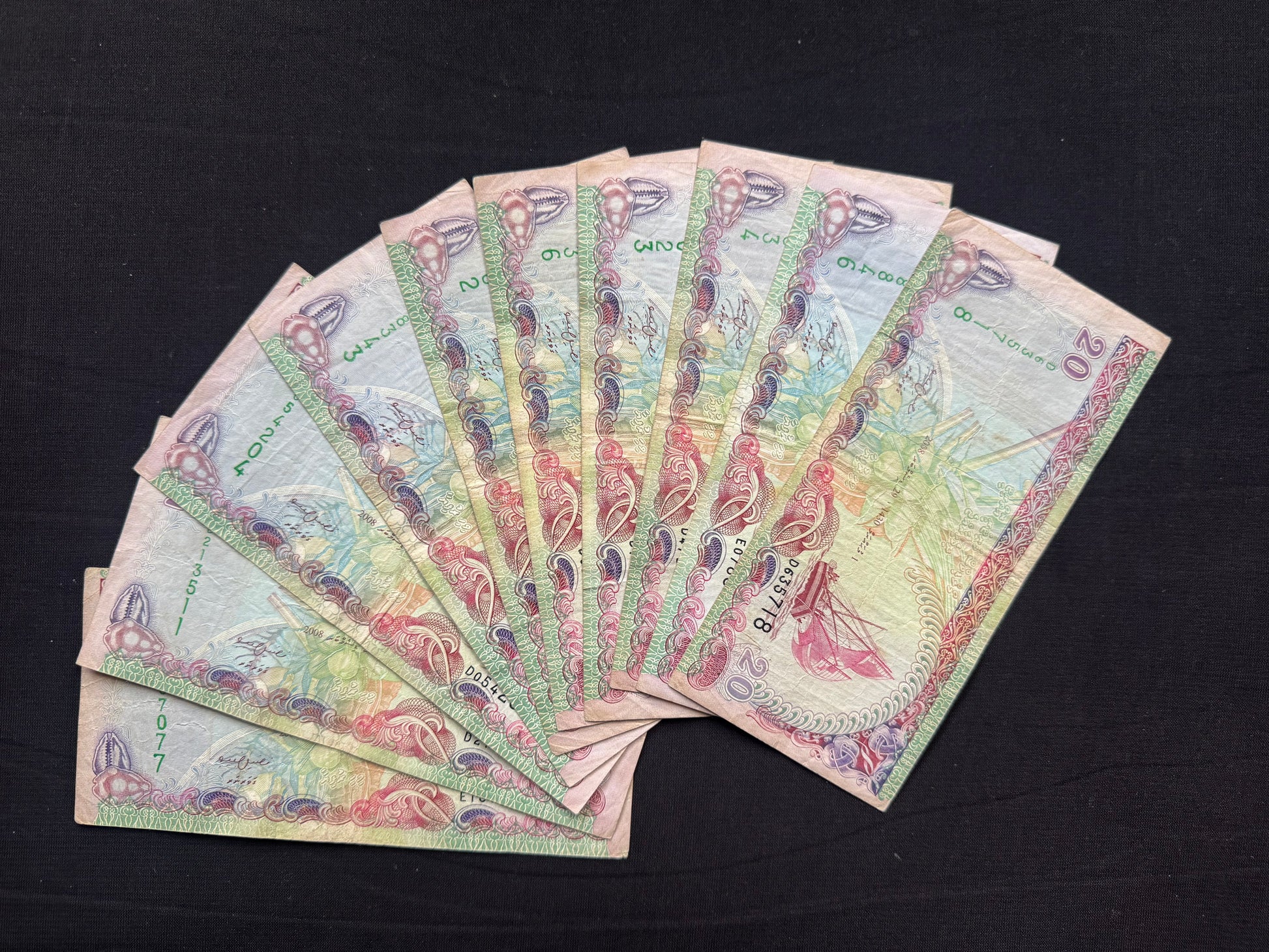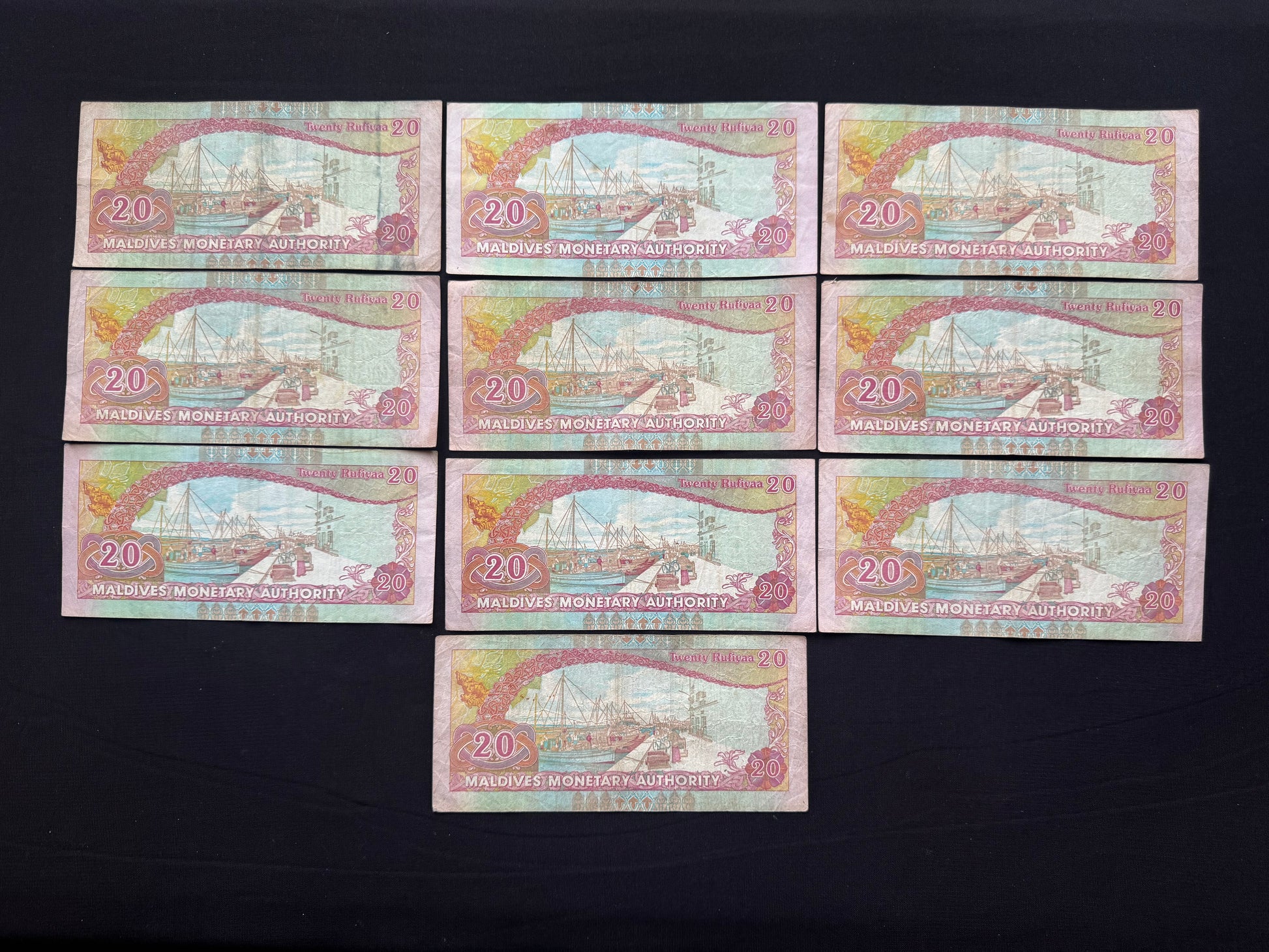 Maldives 20 Rufiyaa Banknotes 2008 Old Paper Money Bills 10 Pcs / Lot P-20c