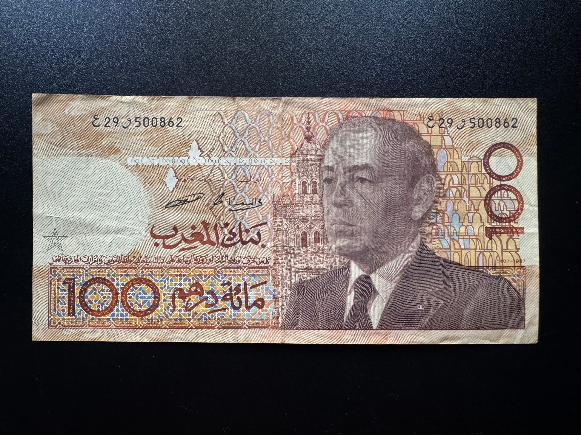 Morocco 100 Dirhams Banknote 1987 old Circulated Paper Money Bank Bills p-65