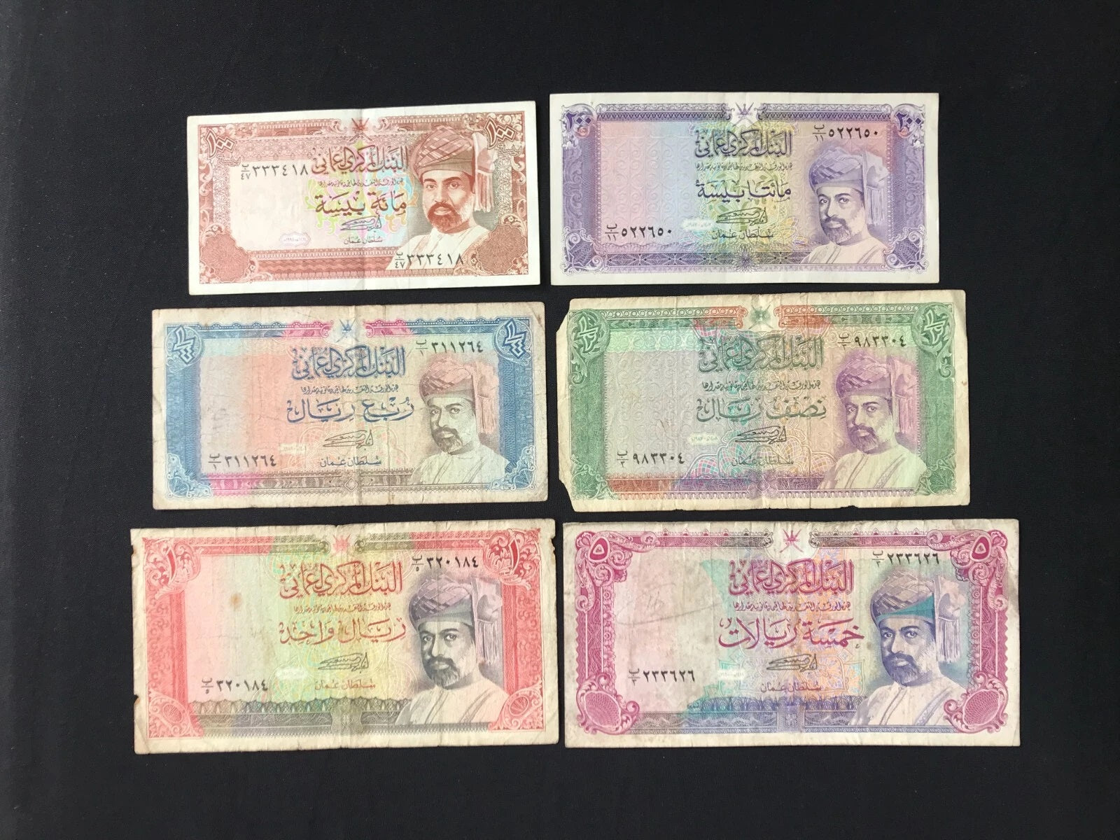 Oman 100,200, 1/4, 1/2, 1, 5 Rials Banknotes 1987-1994 old Bills Set 6Pcs/Lot