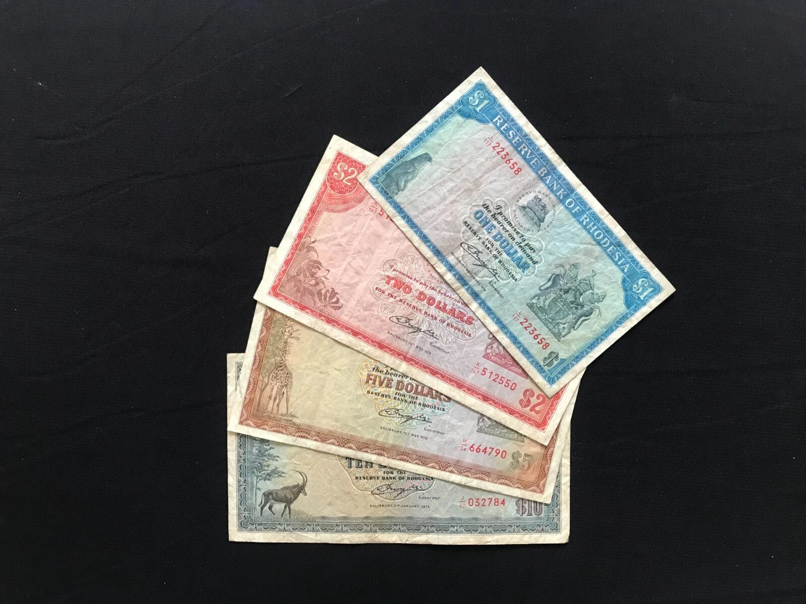 Rhodesia 1, 2, 5, 10 Dollars Banknotes 1979 Old Rare Circulated Bills 4Pcs / Lot
