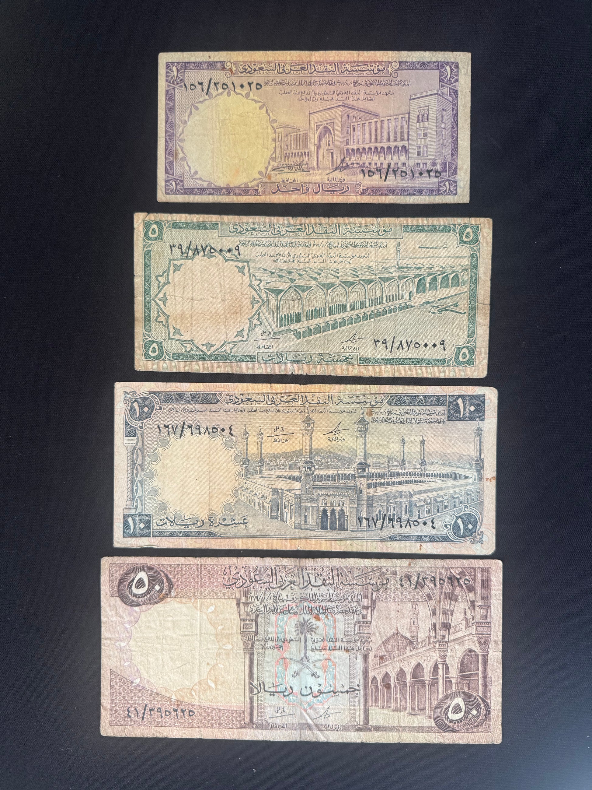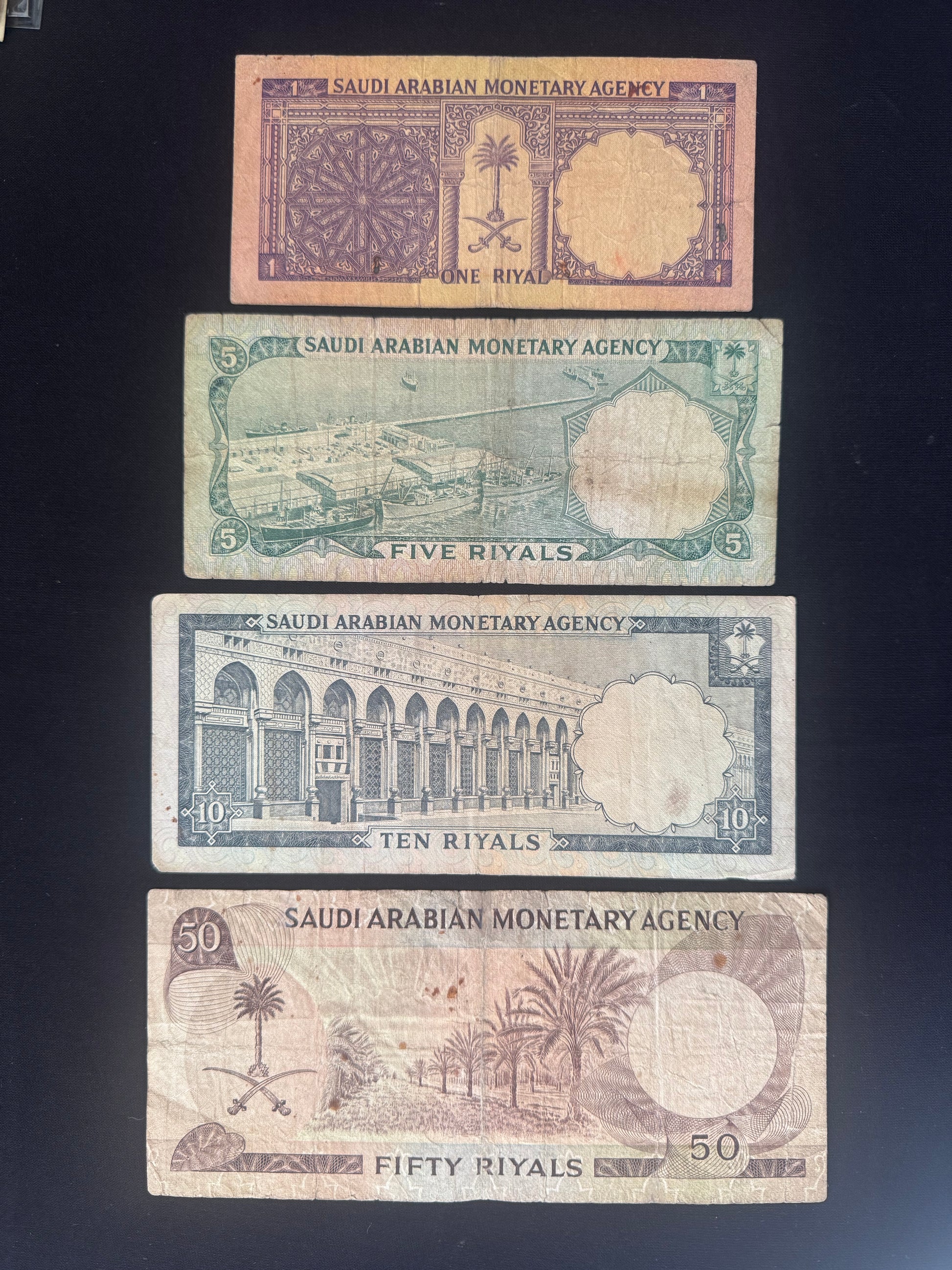Saudi Arabia 1, 5, 10, 50 Riyals Banknotes AH 1379-1968 Issue Rare Bills 4 Pcs