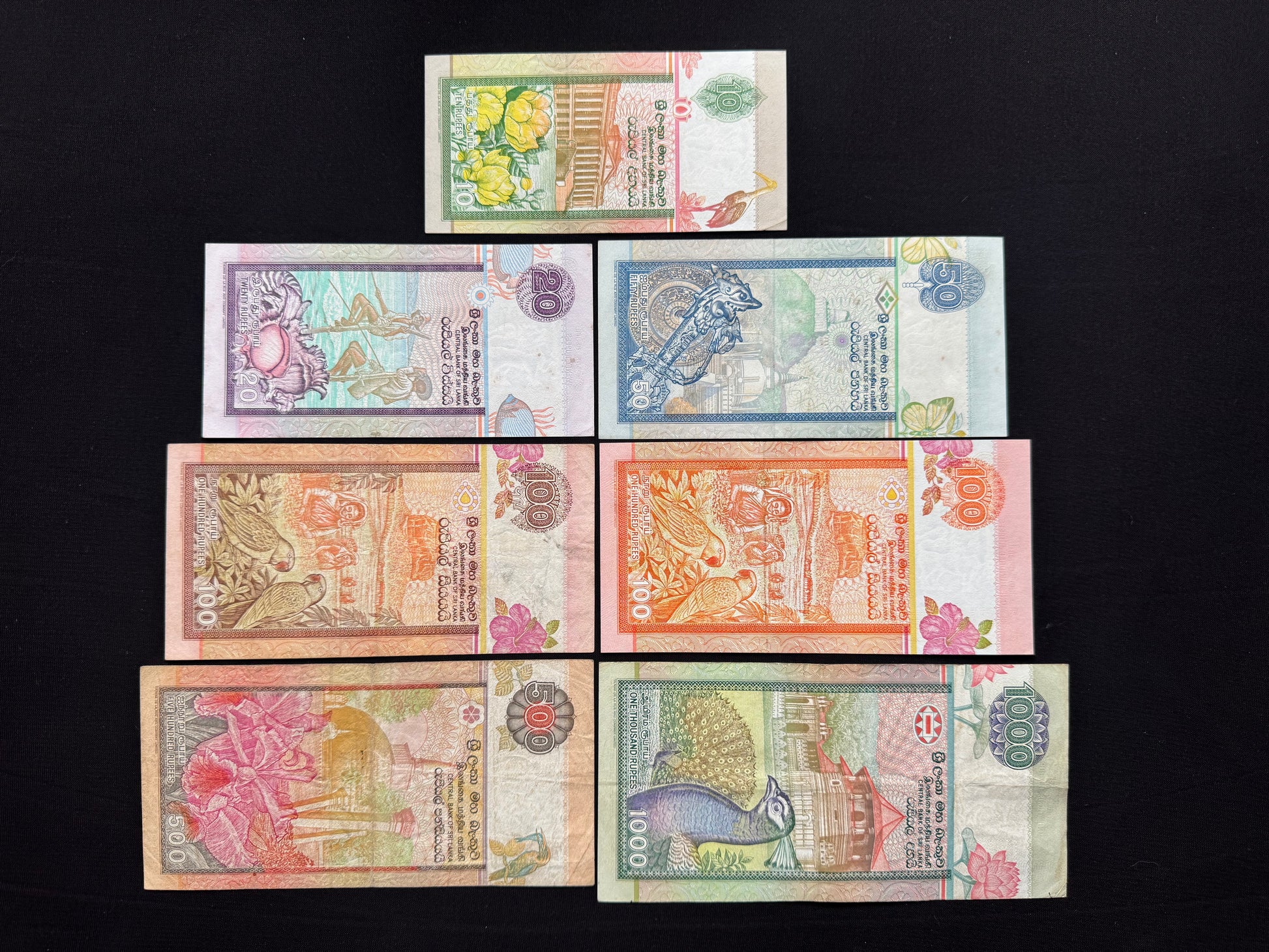 Sri Lanka 10-1000 Rupees Banknotes Old 1991-94 Heritage Series 7/Pcs Full set