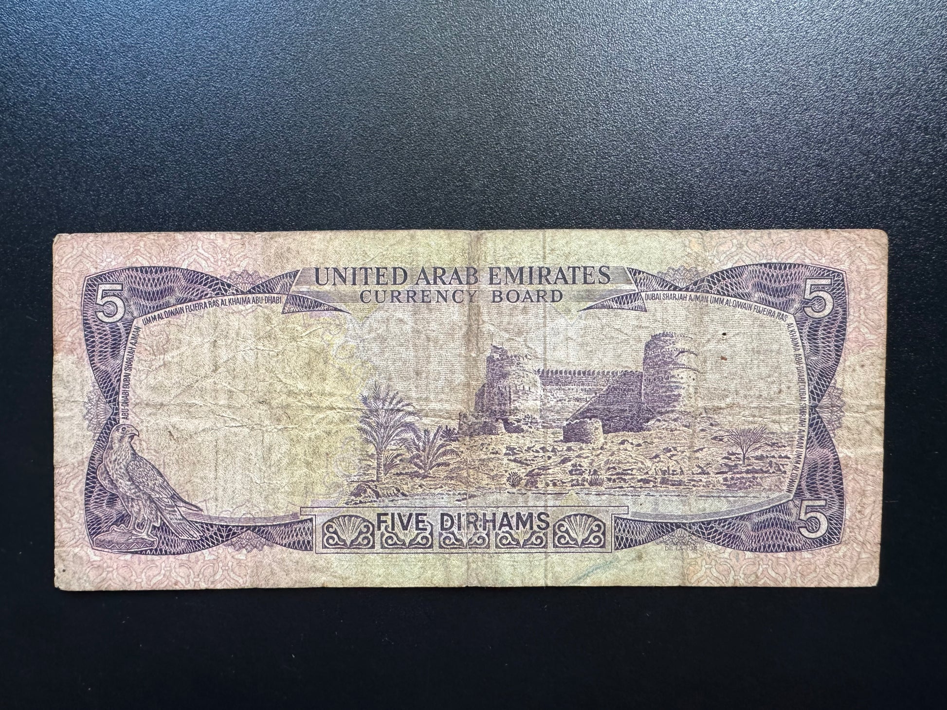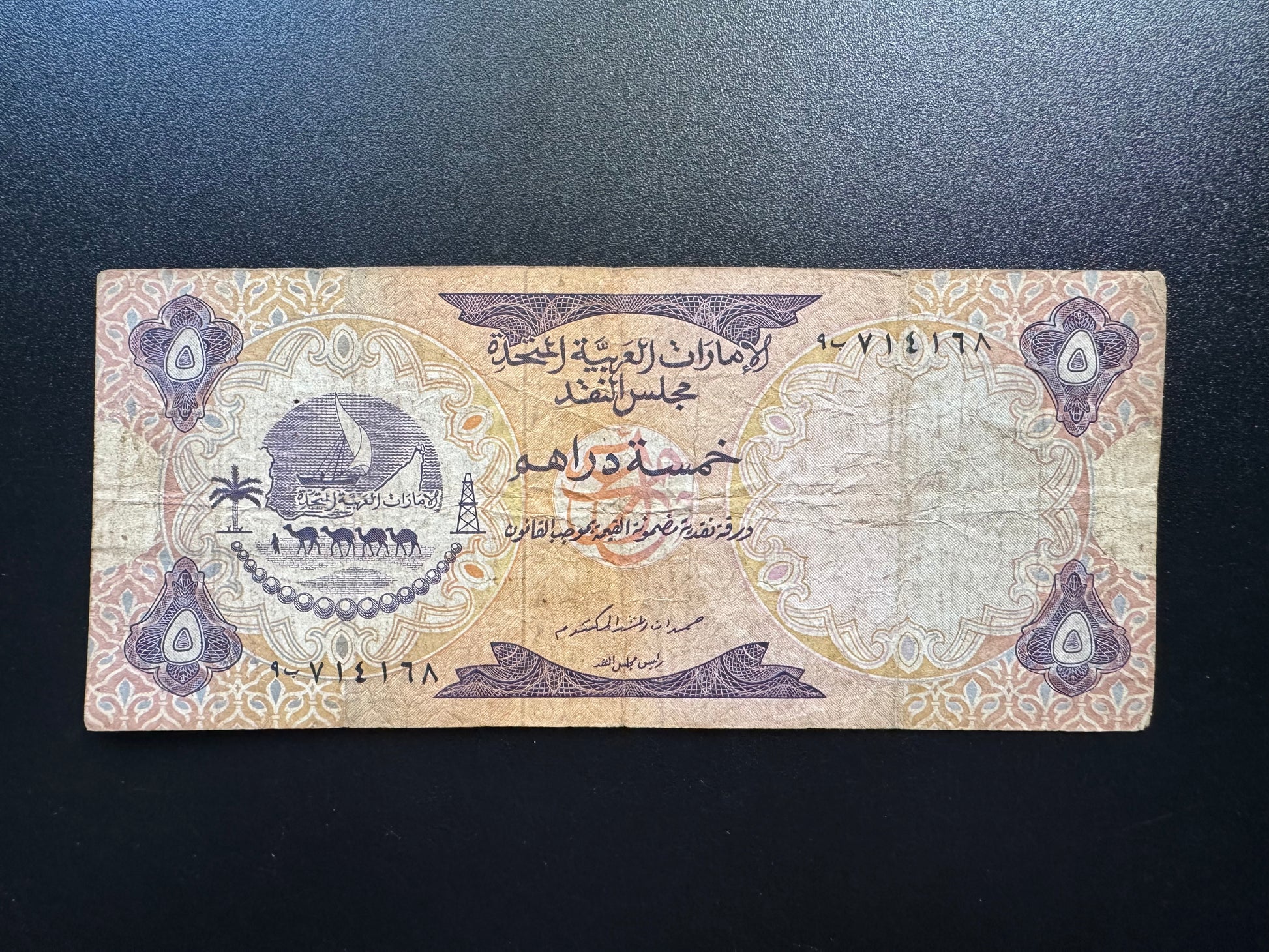 UAE Dubai 5 Dirhams Banknote 1973 Old First Issue Rare Paper Bank Bill P-2